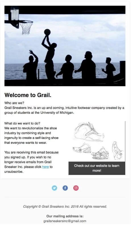GRAIL™ Sneakers, Inc. designs athletic footwear with three principles in mind: fashion, affordability, and ease of use. Our flagship product, the GR-1, utilizes an internal pulley system for adjusting shoe lace tightness. GRAIL™ Sneakers, Inc. prides itself on being technologically innovative, yet fashionably forward. Our innovative shoe-tightening mechanism works as a pulley attached to the back of the heel. In one natural motion, you can slide your shoe on and tighten it.